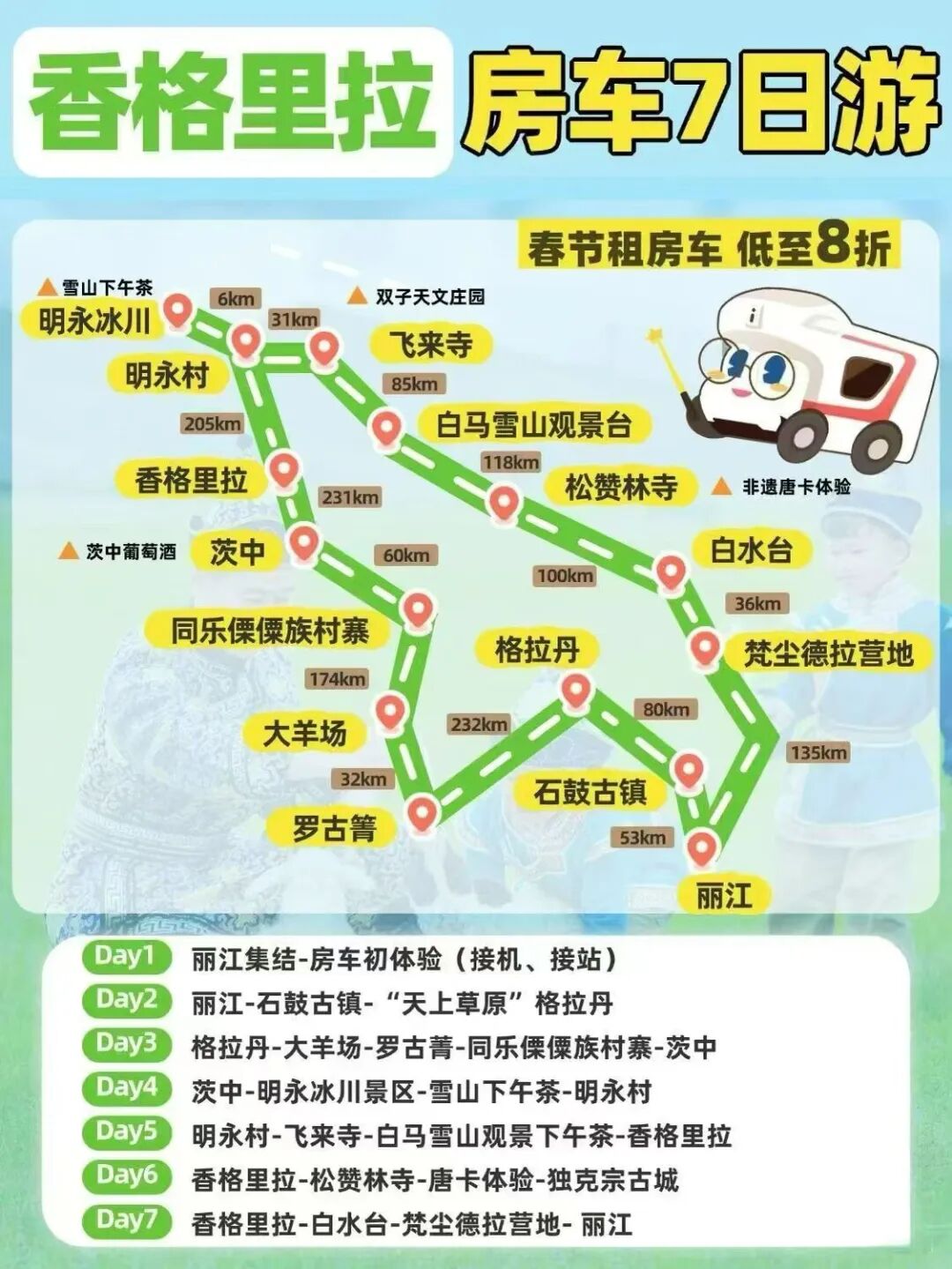 2️⃣ 香格里拉房车 7 日游 | 藏地春日秘境