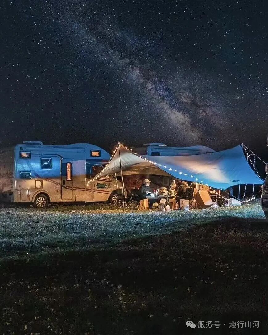 晚间:返回营地,在房车内开启"草原厨房"模式——电磁炉烹制手把肉,搭配草原奶食,听牧民讲述草原传说。夜晚推开房车天窗,观测银河与流星,实现"移动观星台"的独特体验。